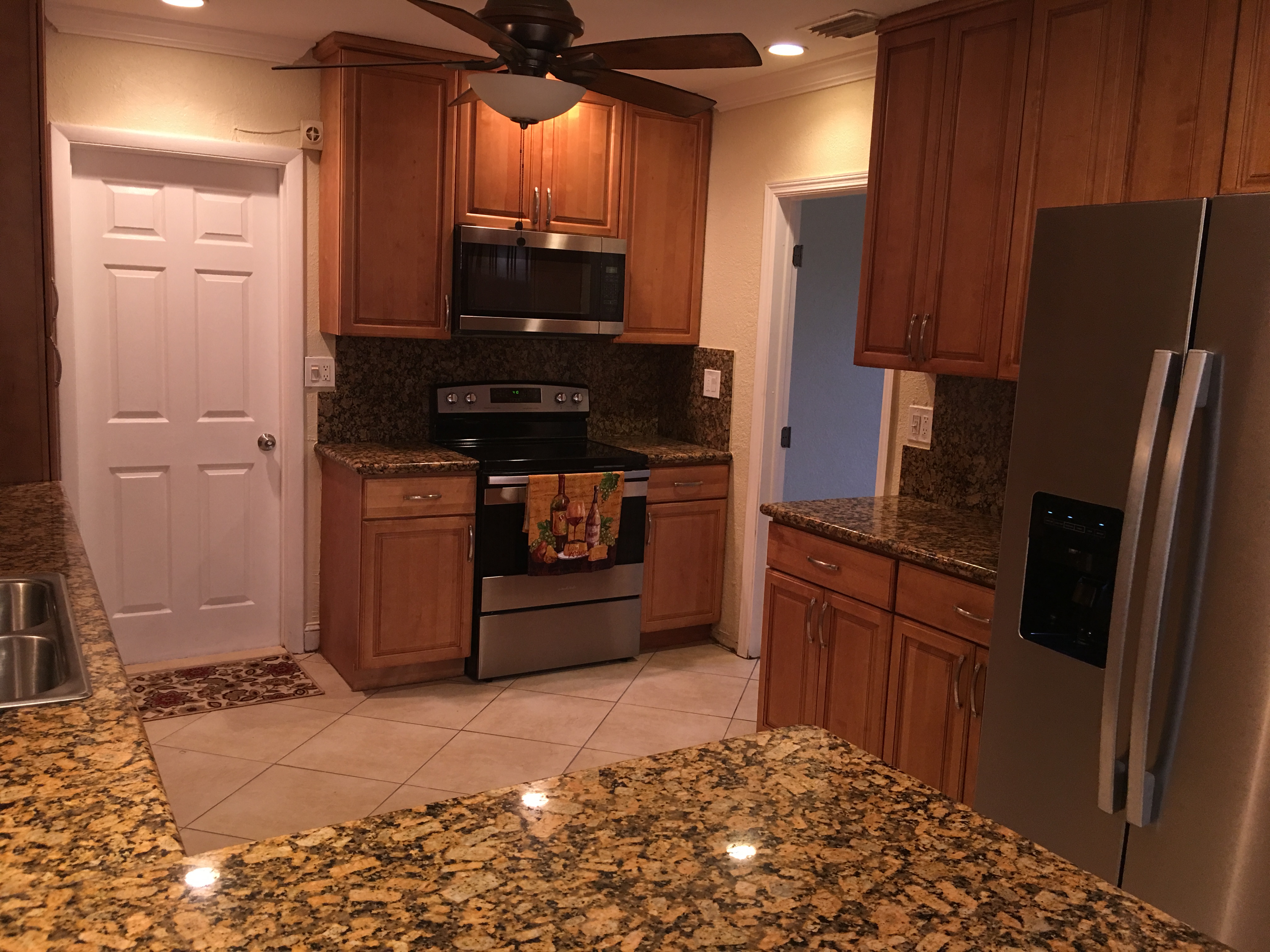 Spacious! 4 bedroom 2 bath with a bonus room, ad a closet and make it a 5th bedroom. Newer 42" wood Cabinets in the Kitchen with Granite counter tops. All new Stainless Appliances Seperate Laundry area inside the AC! One Car Garage with Automatic opener. Huge back yard on the water!, Mango trees and Nice tool shed. Ready for a New Family!